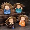 Handcrafted Set of 4 Baby Monk Decorative Showpiece (Polyresin)