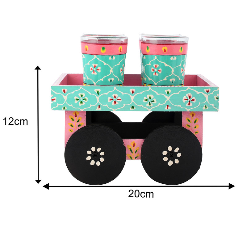 HandPainted Alluminium Tea Kettle with Four Glasses and Wooden Tray For Home Decor , Tea Party , Serving