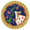 This hand-painted pichwai features a beautiful image of a cow surrounded by colorful flowers. The cow is a sacred animal in Hinduism, and this pichwai would be a perfect addition to any home or puja room.